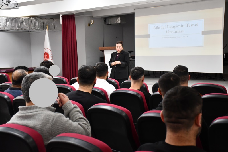 16.01.2026 tarihinde kurumumuzda Adana Aile ve Sosyal Hizmetler İl Müdürlüğünce görevlendirilen uzman personel tarafından hükümlü/tutuklu bireylere yönelik “Aile İçi İletişim” başlığı altında aile içinde etkin bir iletişim, iletişimde ailenin temel değerleri, aile içi ilişkilerde dikkat edilmesi gereken noktalar ve aile içerisinde nasıl sağlıklı iletişim kurulması gerektiği konuları hakkında bilgiler verildi. Katılımcıların konu ile ilgili soruları cevaplandırılarak faaliyet sonlandırıldı.