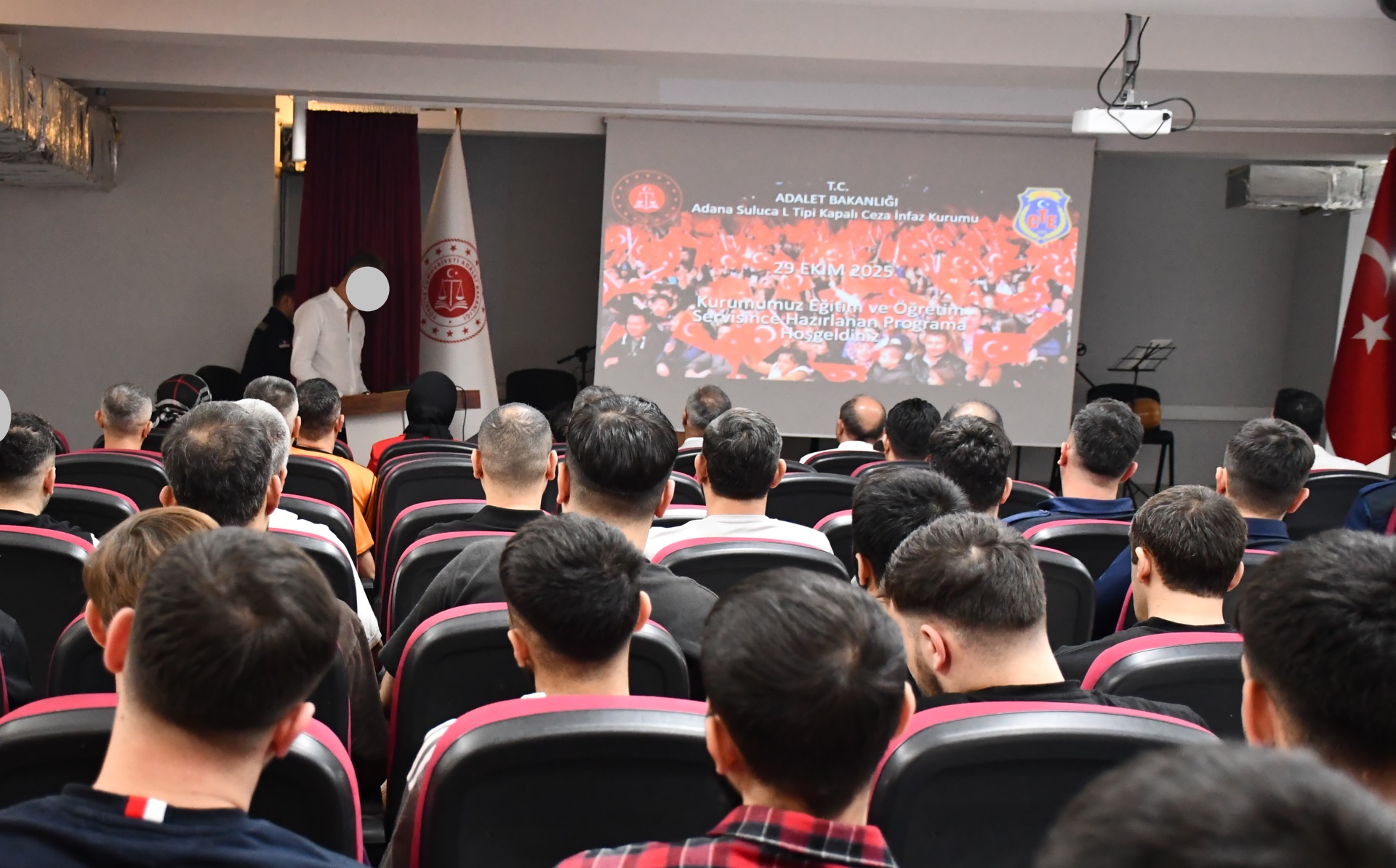 31.10.2025 tarihinde kurumumuzda Cumhuriyetimizin 102. Yıl dönümü kapsamında Eğitim-Öğretim Servisi tarafından program düzenlenmiştir. Kurum yöneticilerimiz, kurum personellerimiz ve hükümlü tutukluların katılımı ile gerçekleştirilen programda Cumhuriyet Bayramı coşkulu bir biçimde kutlanmıştır. Program, Ulu Önder Mustafa Kemal ATATÜRK önderliğinde vatan uğruna seve seve canını feda eden aziz şehitlerimiz anısına saygı duruşu, ardından İstiklal Marşımızın okunması ile başlamış olup günün anlam önemiyle ilgili konuşma yapıldıktan sonra belgesel gösterimi yapılmış sonrasında ise kurumumuzda Cumhuriyet Bayramı temalı şiir yarışmasında 1. olan şiirin okunmasıyla devam etmiştir. Programımız günün anlam ve önemine binaen marş ve türkü dinletisinin ardından sona ermiştir.